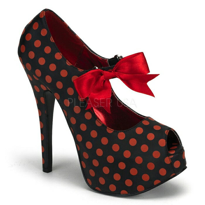 Pleaser プリーザー パンプス インヒール インソール 厚底 黒 ブラック サテン つや消し 赤 レッド ドット 女性 男性 用 ハイヒール 大きいサイズ 小さいサイズ ピンヒール シークレットシューズ レディース メンズ 14 cm ヒール 15センチ ヒール TEEZE-25 TEE25/BR/SAT 取寄
